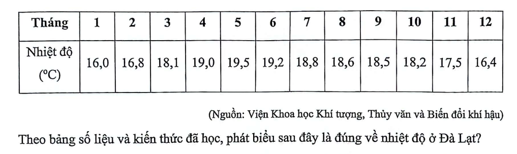 - A. Nhiệt độ thấp nhất vào tháng 12 do là thời gian mặt trời lên đỉnh ở phía Bắc