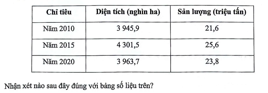 - B. Năng suất lúa giảm liên tục trong giai đoạn 2010-2020