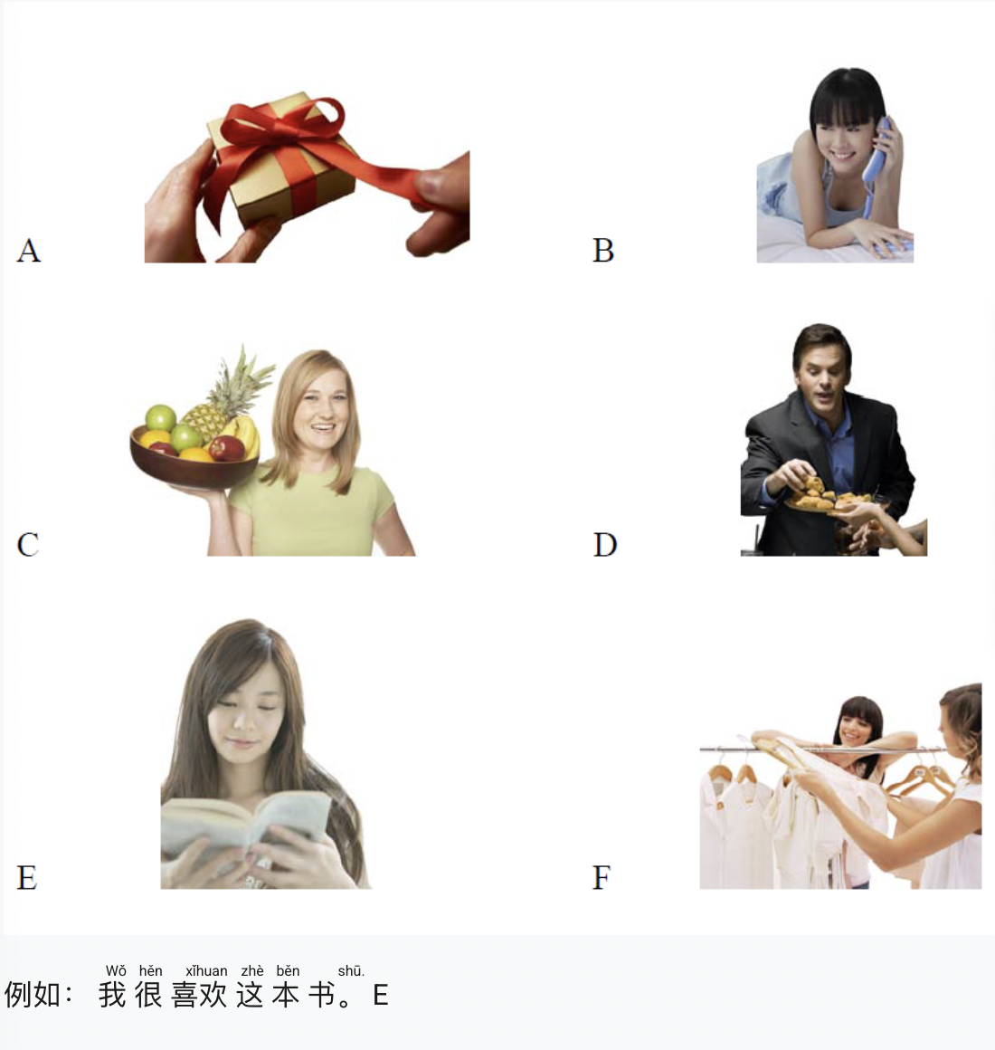 女: 在, 请 ( ? ), 我去叫他。 (Zài, qǐng ( ? ), wǒ qù jiào tā.)