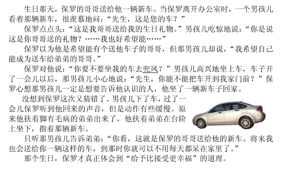人的一生, 就像乘坐一辆公交车。我们知道它有起点和终点, 却无法预知沿途的经历。有的人行程长, 有的人行程短。有的人很从容, 可以 12____ 窗外的景色。有的人很窘迫, 总处于拥挤之中。要想获得舒适与优雅, 13____