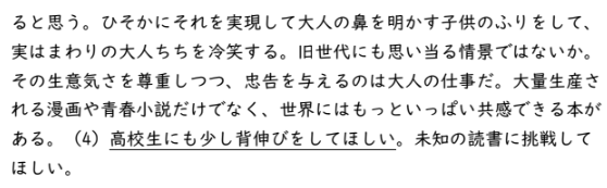 (4)「高校生にも少し背伸びをしてほしい」とは、どういうことか。