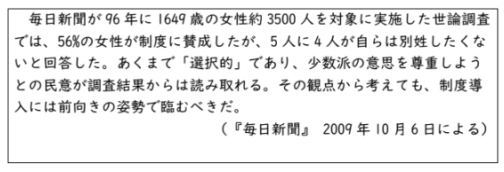 選択的夫婦別姓について本文中に出てきた反対論と違うものを選べ。