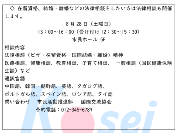 この生活相談で、できないことはどれか。- A. 予約をすること