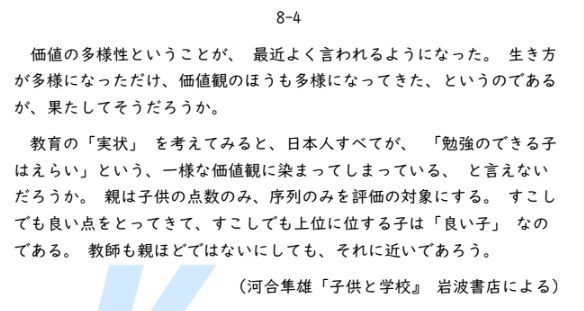 - C. 日本の教育を見てみると、多様な価値観が存在している。