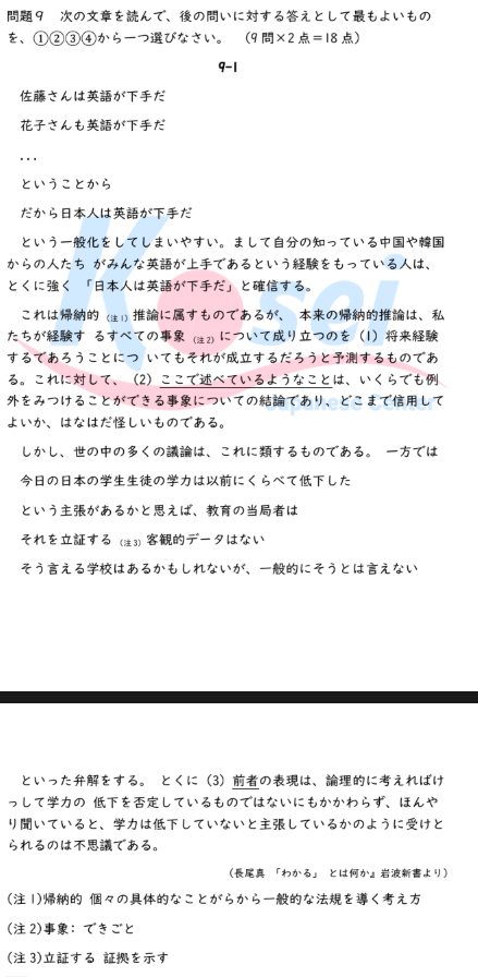 - D. 自分の経験に頼り、「日本人は英語が下手である」と一般的にすることは間違いであること。