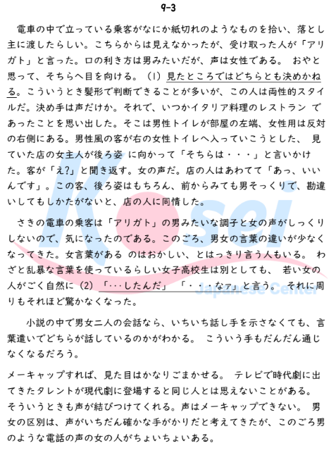 - A. 小説の中の会話で、男が言ったのか女が言ったのか書かなくても区別できる。