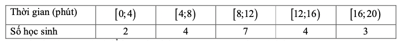 Thời gian trung bình (đơn vị: phút) để hoàn thành bài tập của các em học sinh là