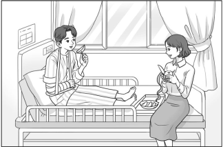 두 사람이 무엇에 대해 이야기를 하고 있는지 고르십시오.