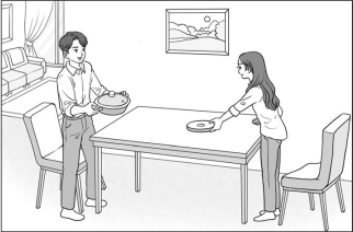 - D. 여자는 남자와 같이 식사를 했습니다.