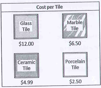 Look at the graphic. How much will the woman pay for each tile?