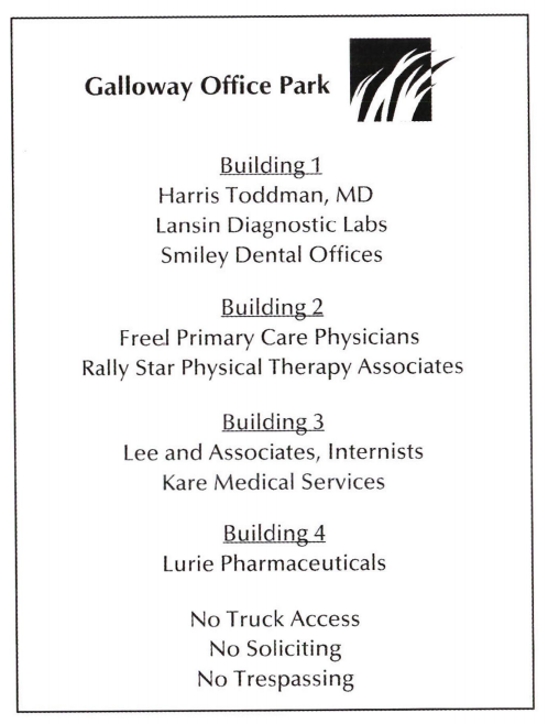 - D. Near the entrance of an office complex