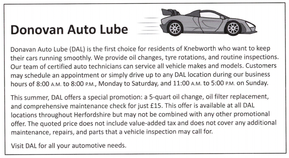 - A. It is not valid outside of Knebworth.