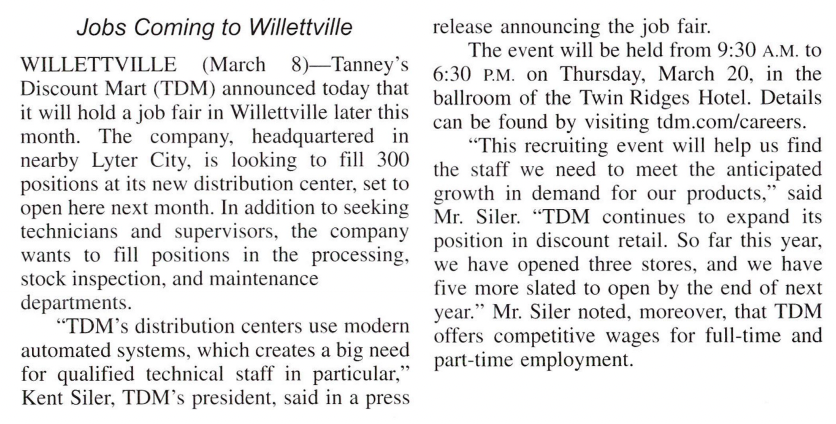 - C. He understands how important the company is for the town.