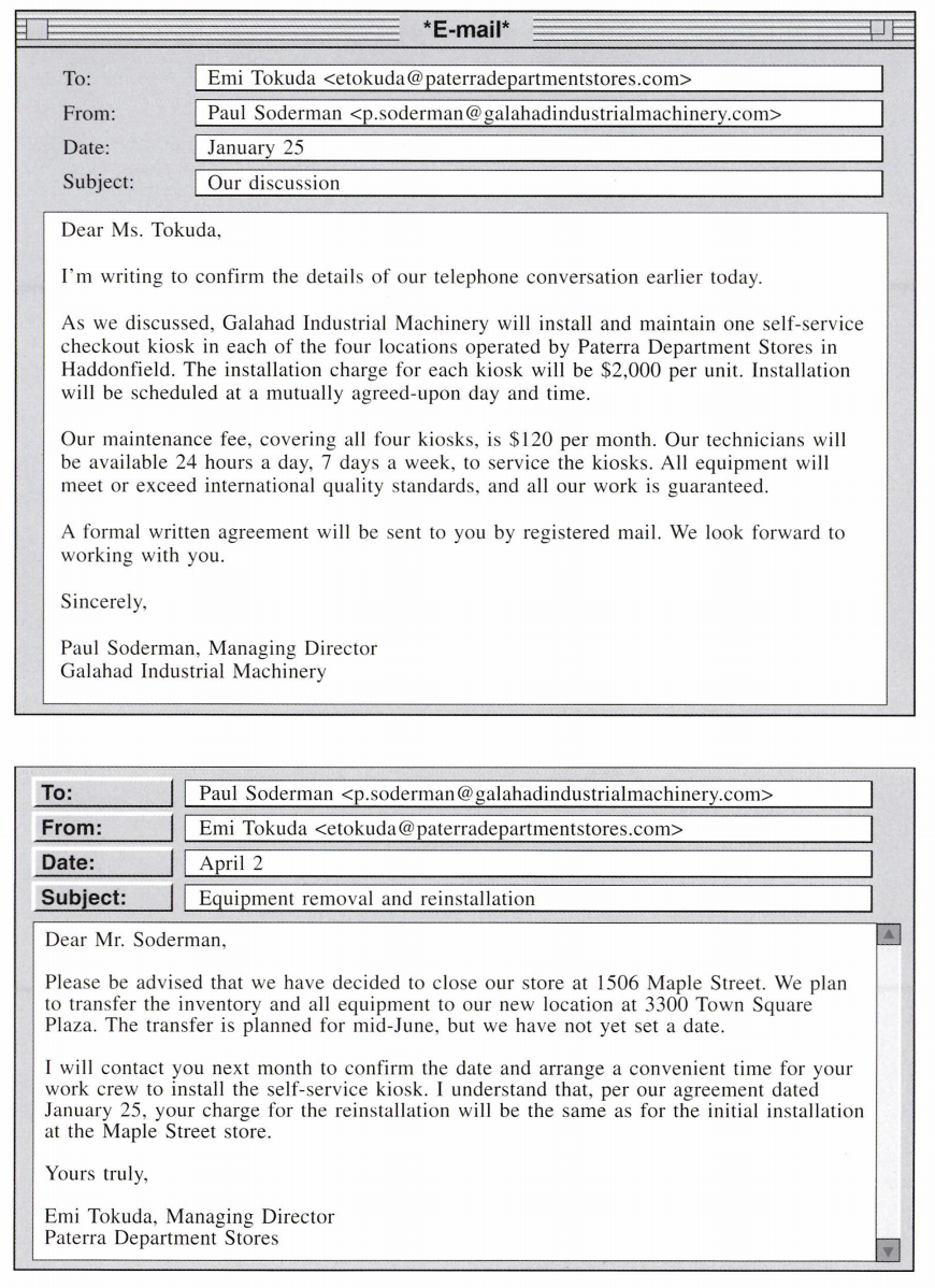 Câu 45: In the first e-mail, what is stated about Galahad Industrial Machinery?