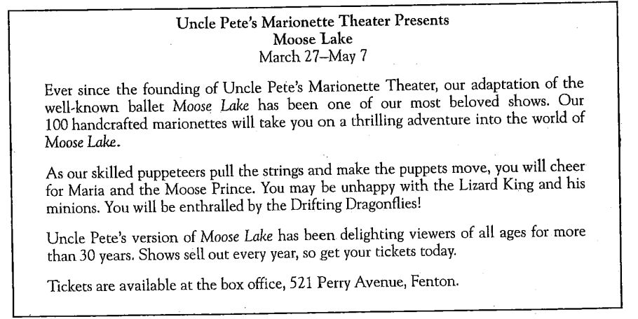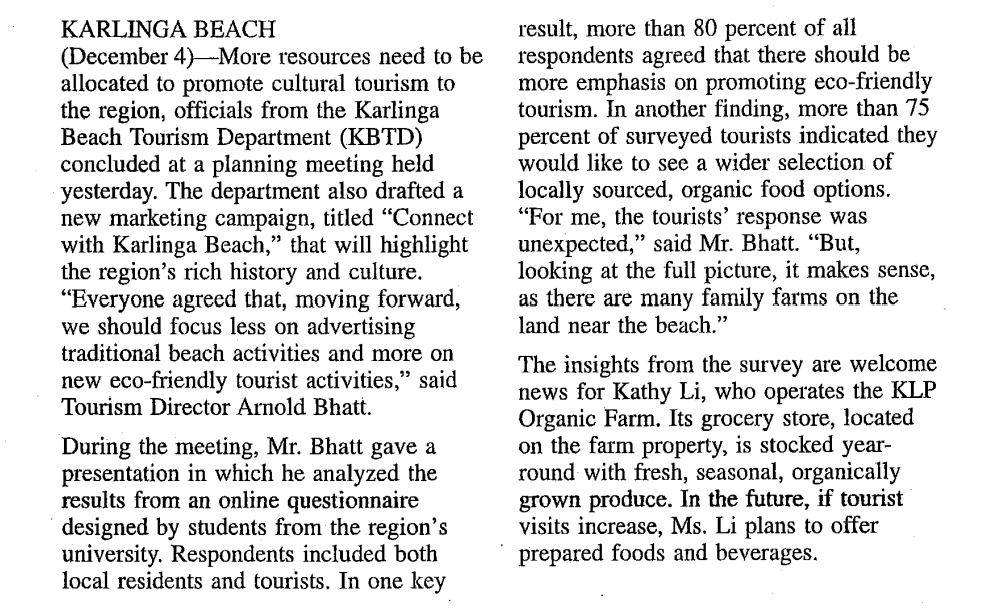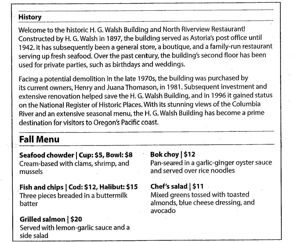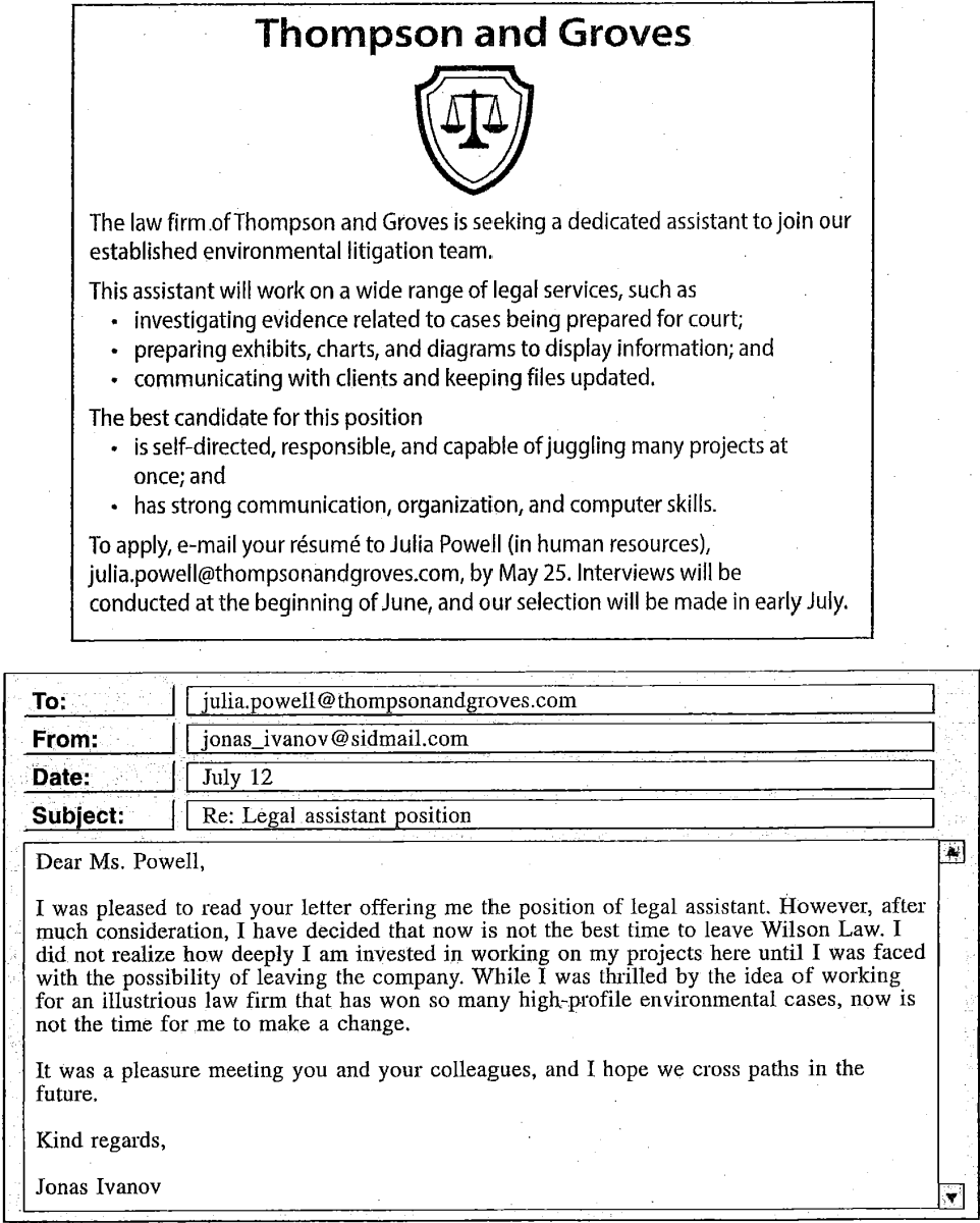 Directions: In this part you will read a selection of texts, such as magazine and newspaper articles, e-mails, and instant messages. Each text or set of texts is followed by several questions. Select the best answer for each question and mark the letter (A), (B), (C), or (D) on your answer sheet.