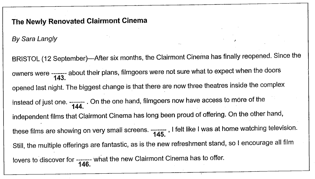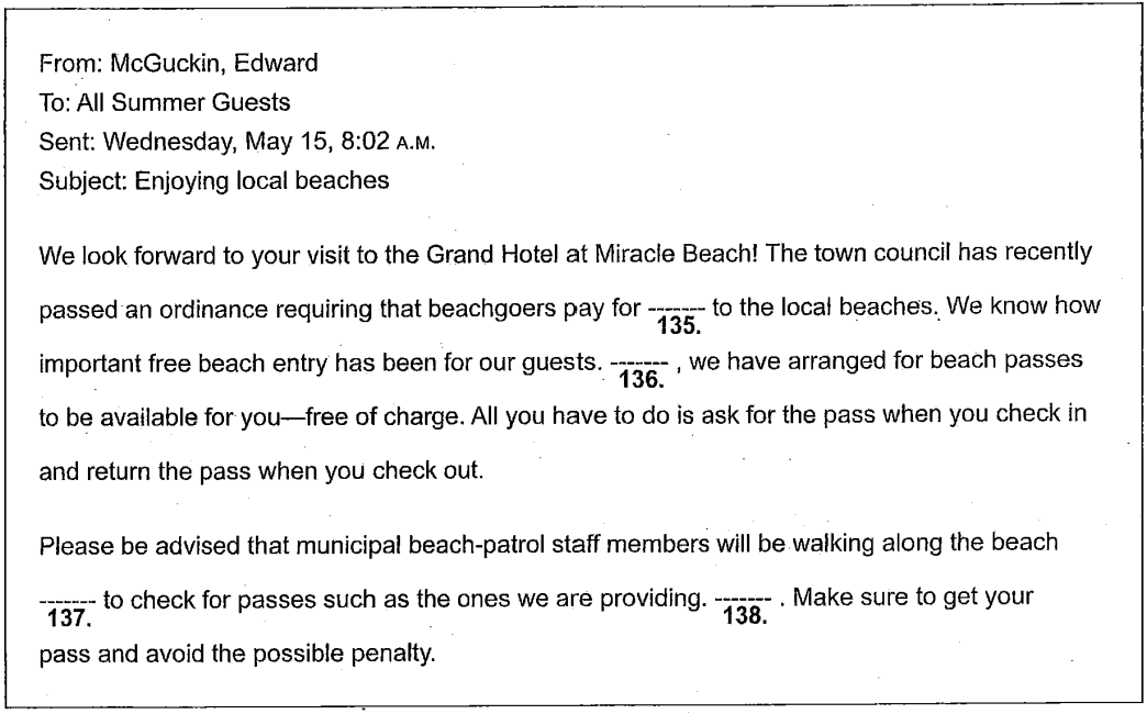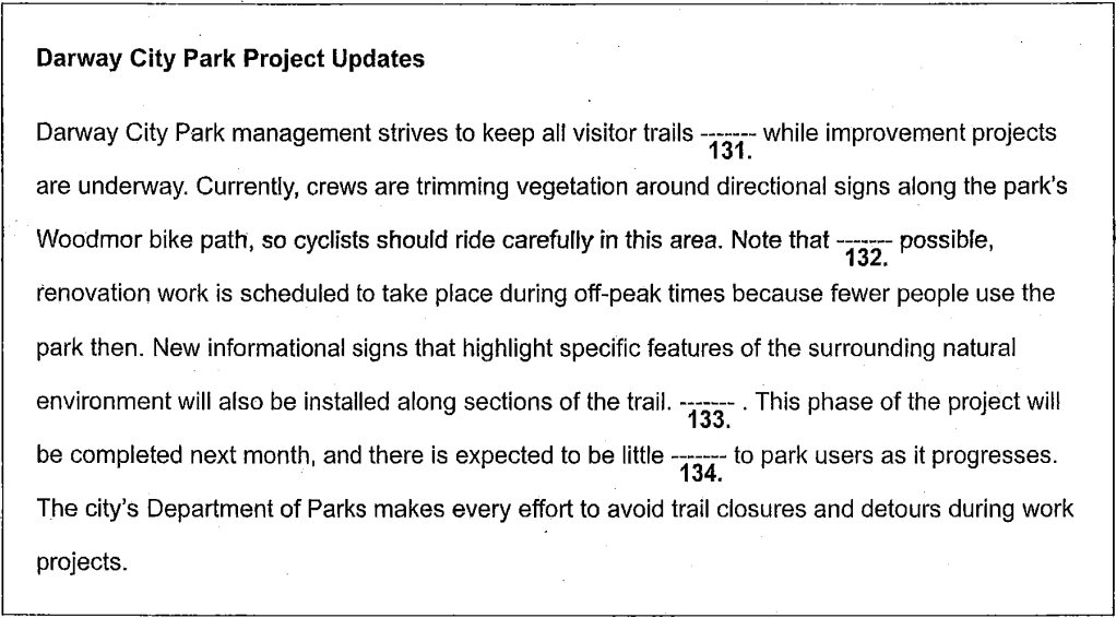 Directions: Read the texts that follow. A word, phrase, or sentence is missing in parts of each text. Four answer choices for each question are given below the text. Select the best answer to complete the text. Then mark the letter (A), (B), (C), or (D) on your answer sheet.