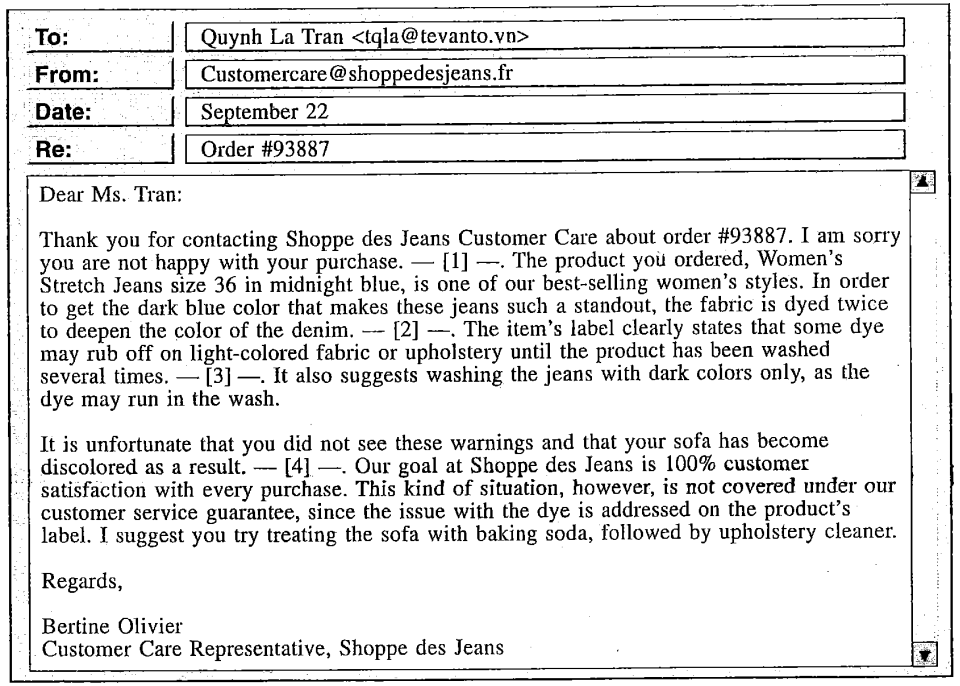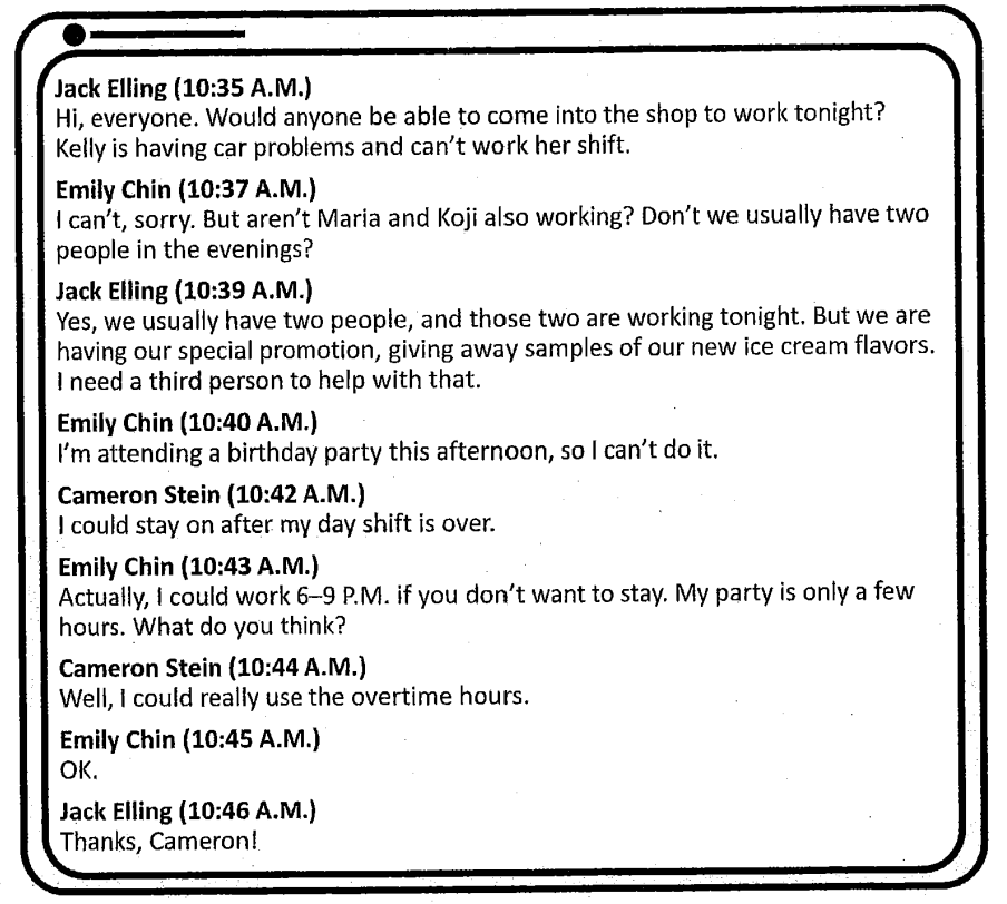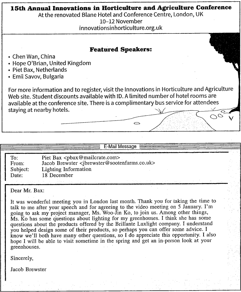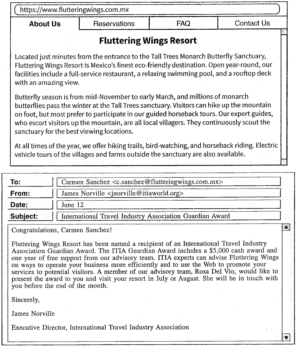 Directions: In this part you will read a selection of texts, such as magazine and newspaper articles, e-mails, and instant messages. Each text or set of texts is followed by several questions. Select the best answer for each question and mark the letter (A), (B), (C), or (D) on your answer sheet.