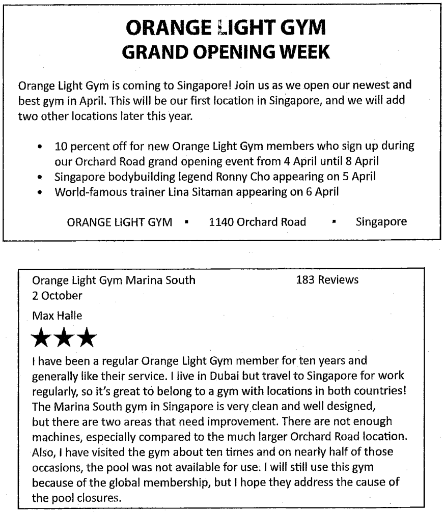 - B. It fixes all exercise machines at Orange Light Gyms in Singapore.
