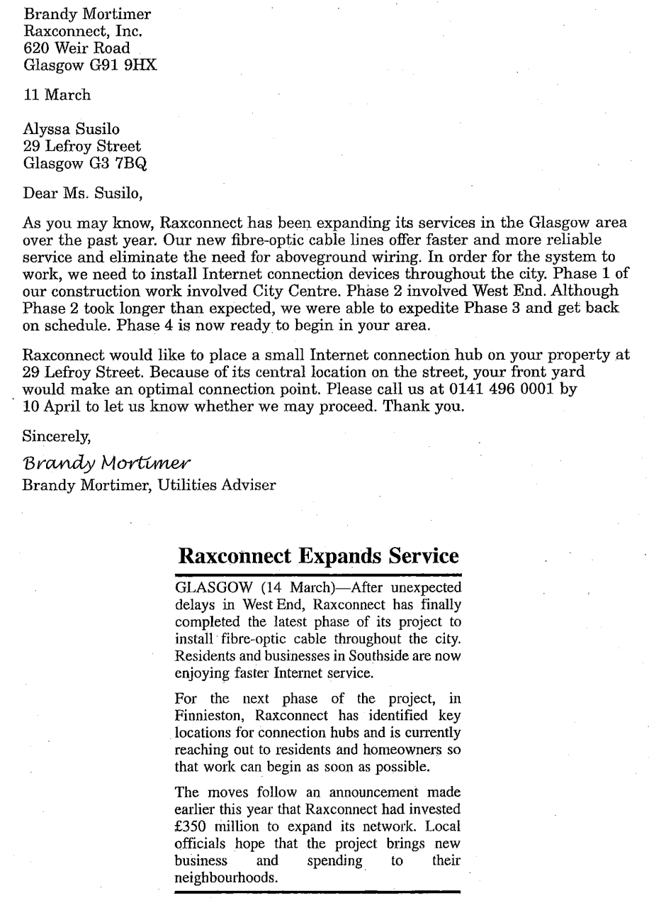 Directions: In this part you will read a selection of texts, such as magazine and newspaper articles, e-mails, and instant messages. Each text or set of texts is followed by several questions. Select the best answer for each question and mark the letter (A), (B), (C), or (D) on your answer sheet.