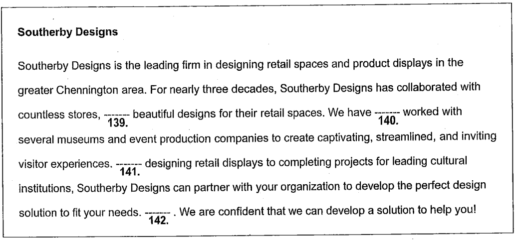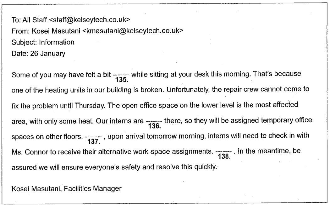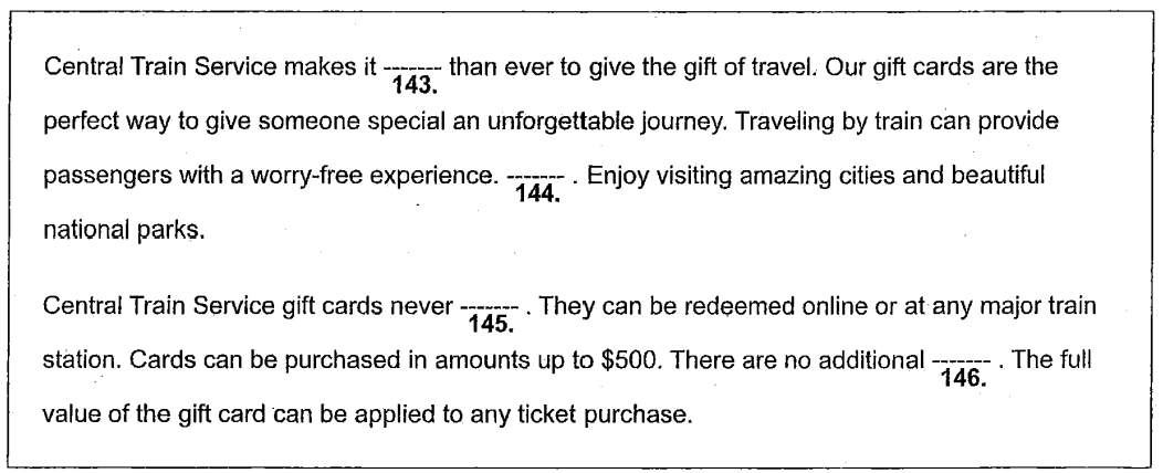 Directions: Read the texts that follow. A word, phrase, or sentence is missing in parts of each text. Four answer choices for each question are given below the text. Select the best answer to complete the text. Then mark the letter (A), (B), (C), or (D) on your answer sheet.