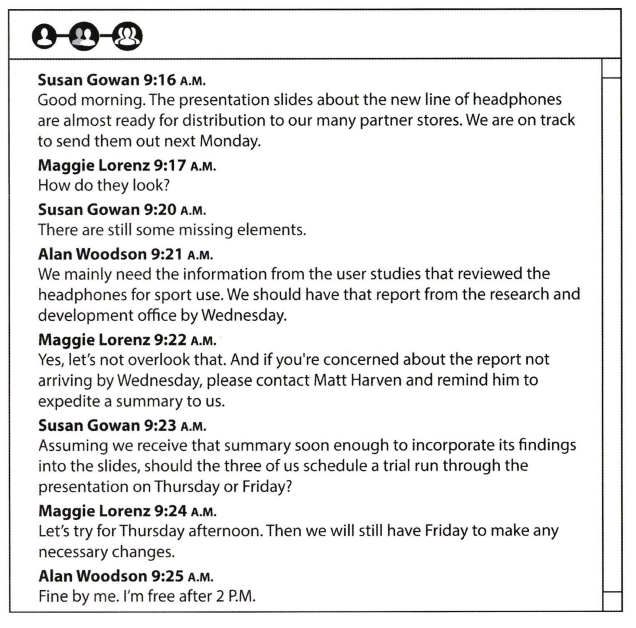 Câu 7: At 1:00 P.M., what does Ms. Chi most likely mean when she writes, “Sure thing, Mina"?