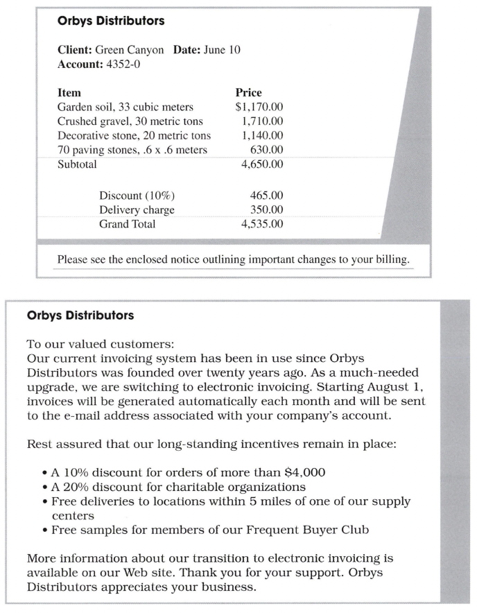 - D. He has been a customer of Orbys Distributors for about twenty years.