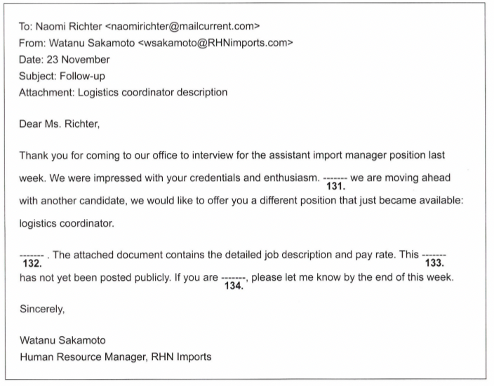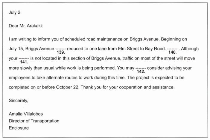 Directions: Read the texts that follow. A word, phrase, or sentence is missing in parts of each text. Four answer choices for each question are given below the text. Select the best answer to complete the text. Then mark the letter (A), (B), (C), or (D) on your answer sheet.
