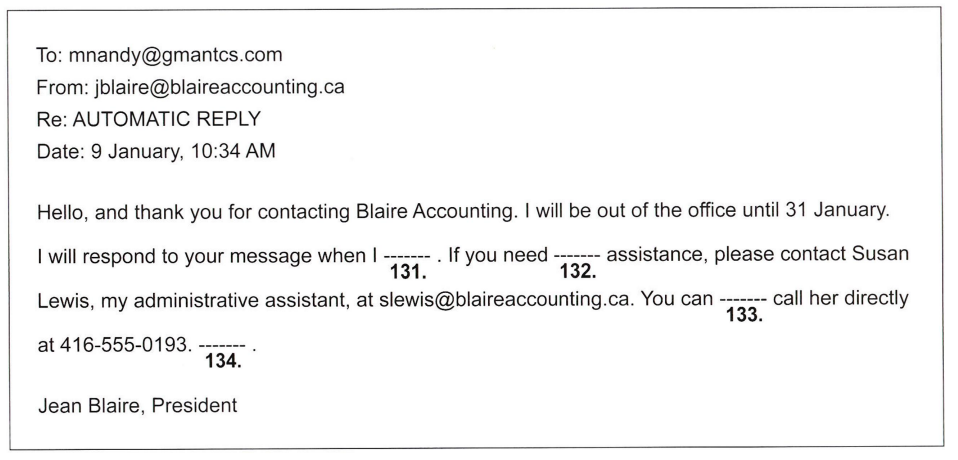 - A. Ms. Blaire will be back in the office earlier than expected.