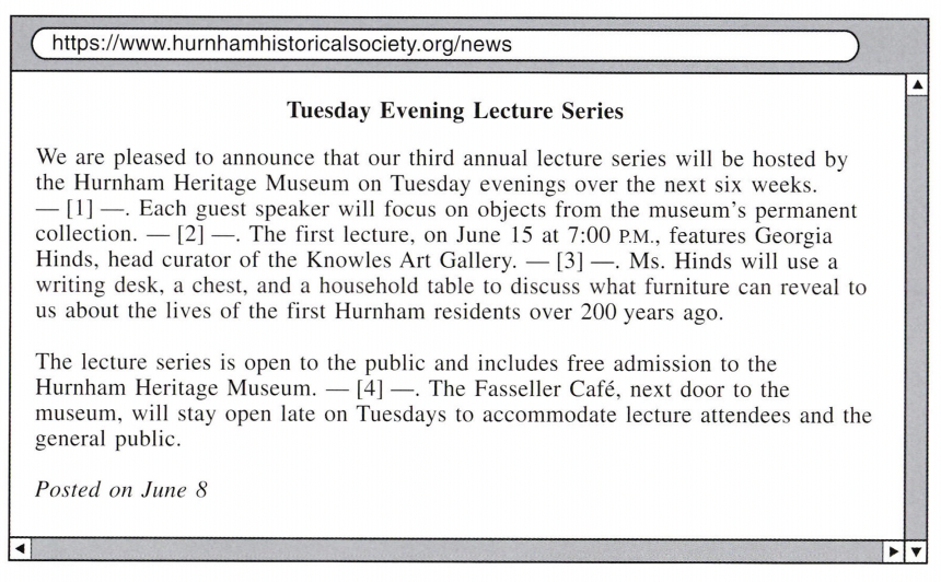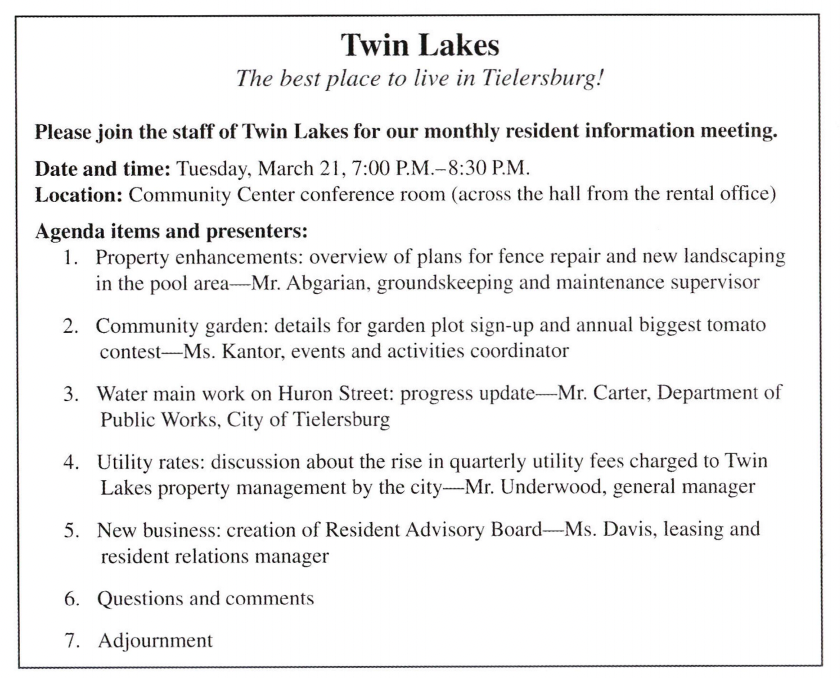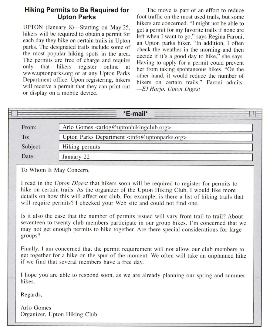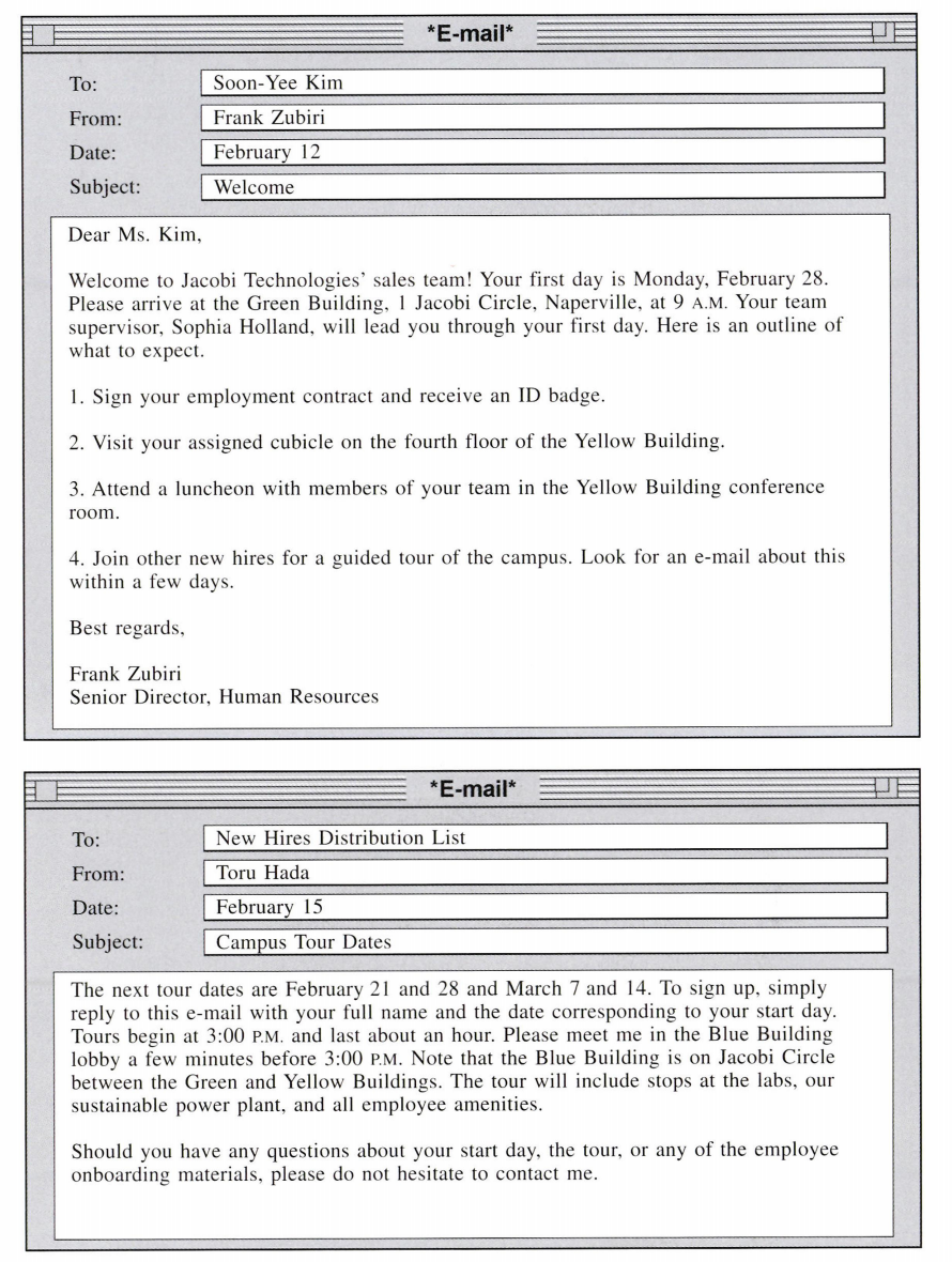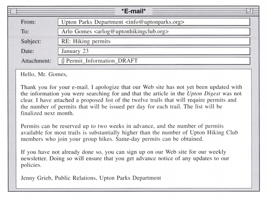 Directions: In this part you will read a selection of texts, such as magazine and newspaper articles, e-mails, and instant messages. Each text or set of texts is followed by several questions. Select the best answer for each question and mark the letter (A), (B), (C), or (D) on your answer sheet.