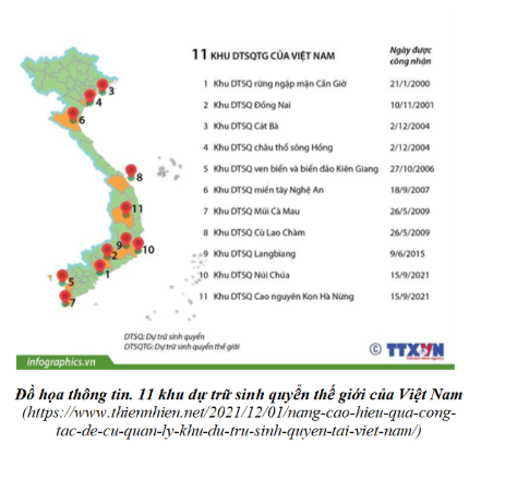 (Hình ảnh đồ họa thông tin về 11 Khu DTSQTG của Việt Nam và ngày được công nhận)