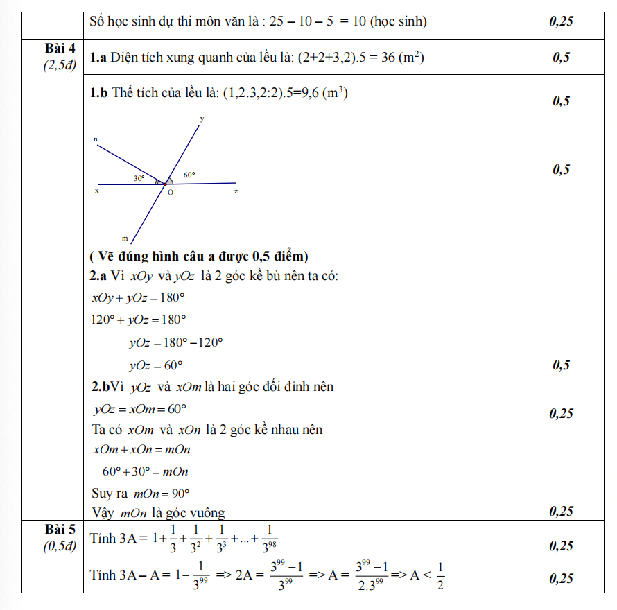Đáp án Đề toán Giữa kì 1 toán 7 của THCD Thanh Am sau đây.