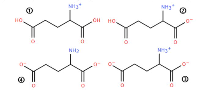 Câu 27: Tùy thuộc vào pH của môi trường mà glutamic acid tồn tại chủ yếu ở các dạng sau: