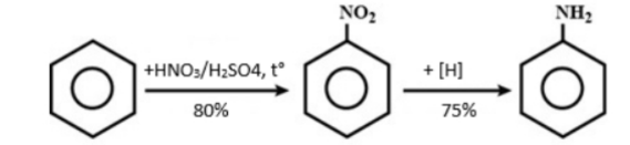 Câu 26: Một trong các hướng điều chế aniline là từ benzene và được thực hiện theo sơ đồ sau: (hình ảnh sơ đồ phản ứng)