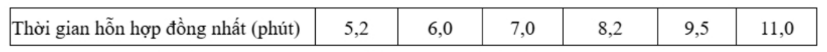 Kết quả thí nghiệm được cho ở bảng sau:![]()