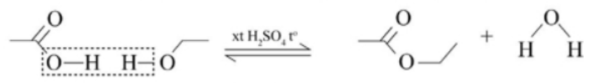 Câu 6: Trong môi trường acid, phản ứng ester hóa giữa acetic acid với ethyl alcohol và phản ứng thủy phân ester ethyl acetate là thuận nghịch của nhau. Sơ đồ phản ứng thuận nghịch được biểu diễn sau: