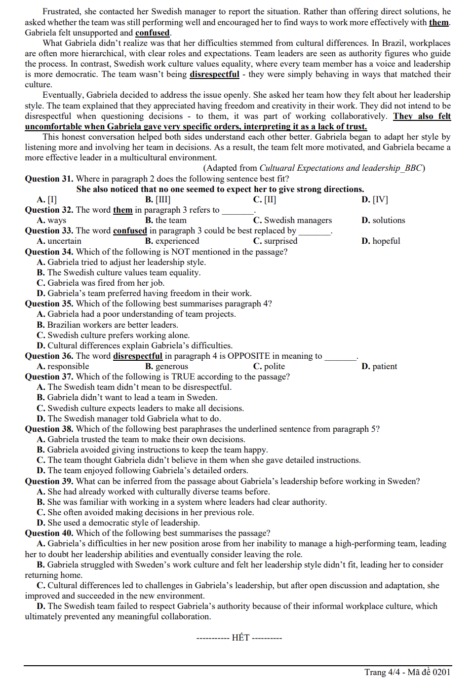 Question 39. What can be inferred from the passage about Gabriela’s leadership before working in Sweden?