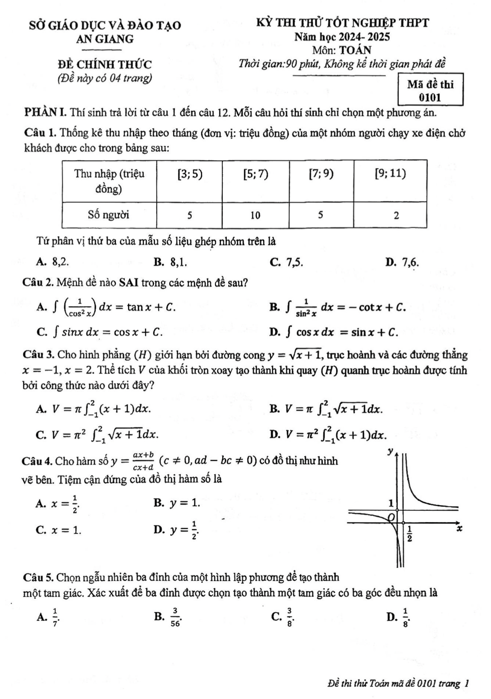 Đề thi thử đại học môn Toán 2025 – Sở GDĐT An Giang