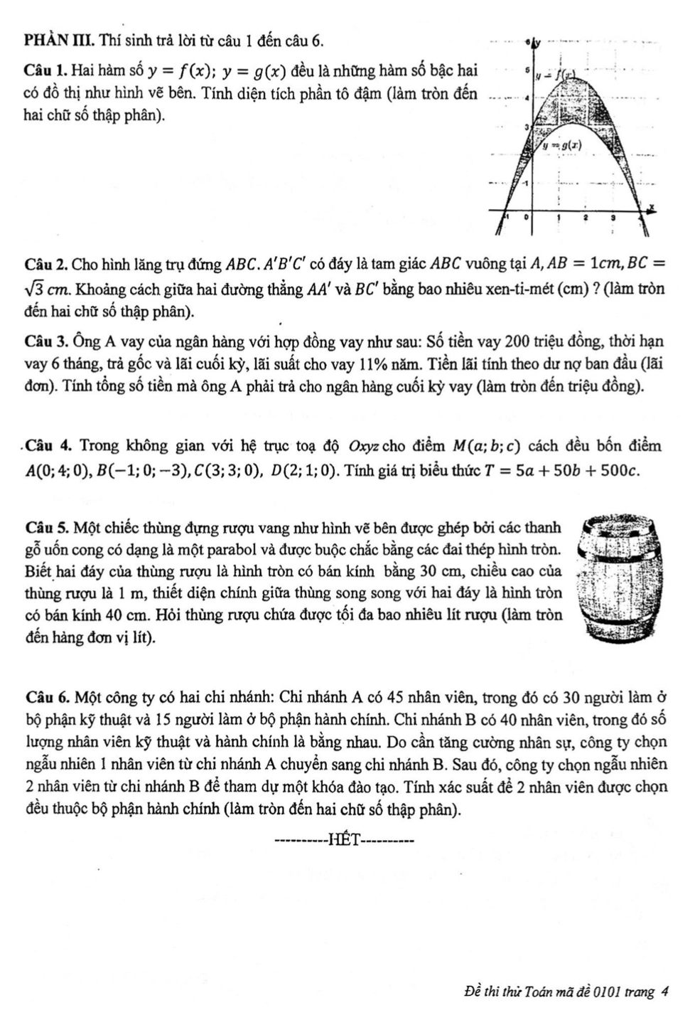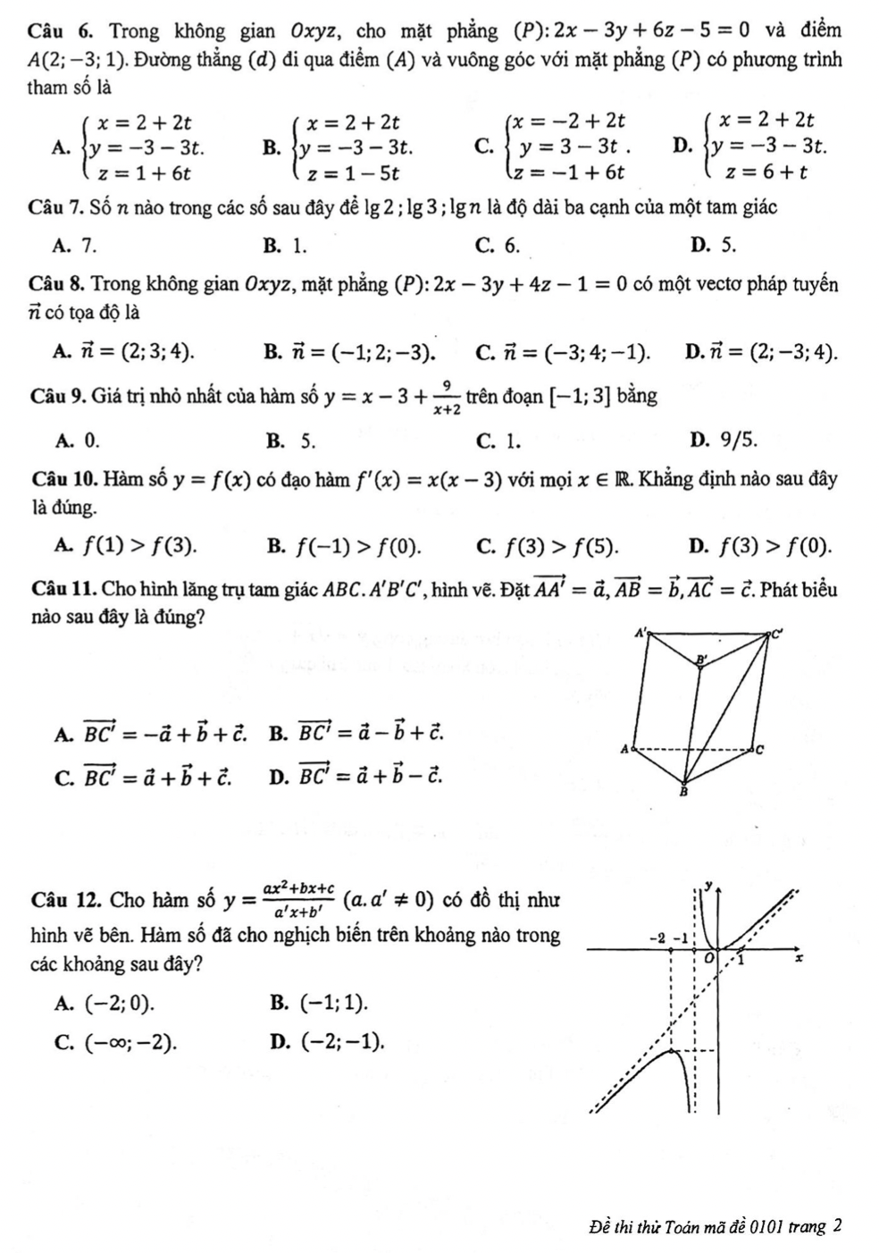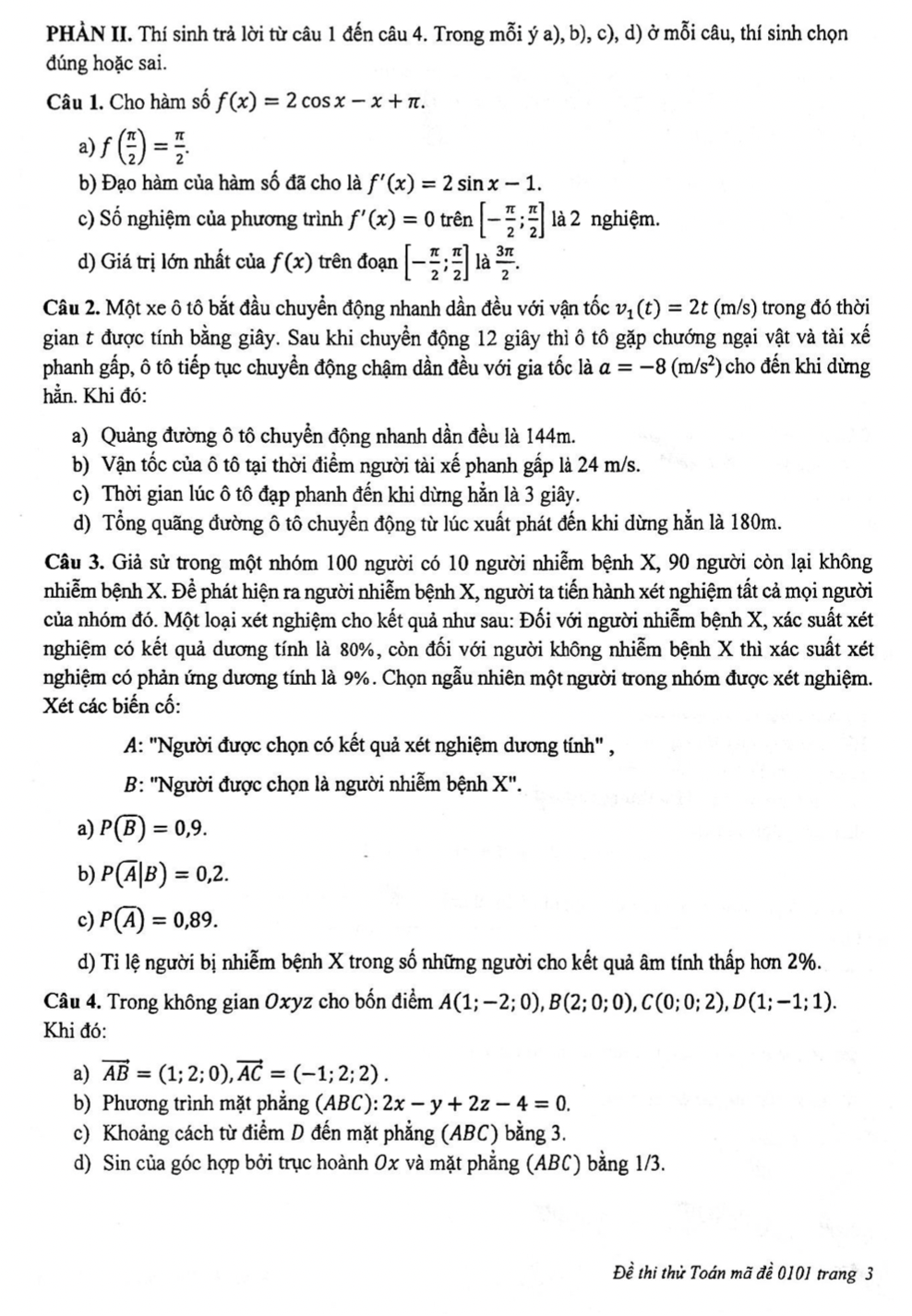 Đề thi được biên soạn dựa trên định hướng ra đề mới nhất của Bộ GD&ĐT, bao quát toàn bộ các chuyên đề trọng tâm như: hàm số, mũ – logarit, nguyên hàm – tích phân, số phức, hình học không gian, hệ tọa độ Oxy, xác suất – thống kê. Với cấu trúc hợp lý từ cơ bản đến nâng cao, đề thi không chỉ giúp học sinh nắm chắc kiến thức lý thuyết mà còn phát triển tư duy và kỹ năng giải nhanh – chính xác trong thời gian giới hạn.