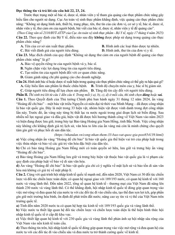 Đề Thi Thử Kinh Tế Pháp Luật THPT mang đến hệ thống câu hỏi được phân loại từ mức độ nhận biết đến vận dụng cao, giúp học sinh từng bước nâng cao khả năng phân tích tình huống, vận dụng kiến thức vào thực tiễn và xử lý câu hỏi trắc nghiệm trong thời gian giới hạn. Nội dung đề tập trung vào những kiến thức quan trọng của chương trình lớp 12, đồng thời hỗ trợ học sinh làm quen với các dạng câu hỏi thường gặp trong kỳ thi tốt nghiệp. Khi luyện tập trên nền tảng dethitracnghiem.vn, học sinh có thể theo dõi kết quả, xem đáp án chi tiết và cải thiện kỹ năng làm bài thông qua hệ thống đánh giá trực quan. Đây là nguồn tài liệu hữu ích hỗ trợ học sinh trong quá trình ôn thi chuyển cấp hiệu quả.