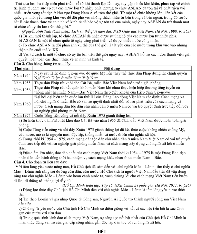 Câu 1. Cho đoạn tư liệu sau: