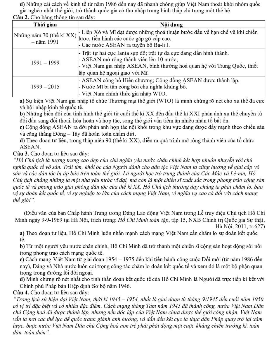 Cho đoạn tư liệu, trả lời các câu 1, 2, 3: