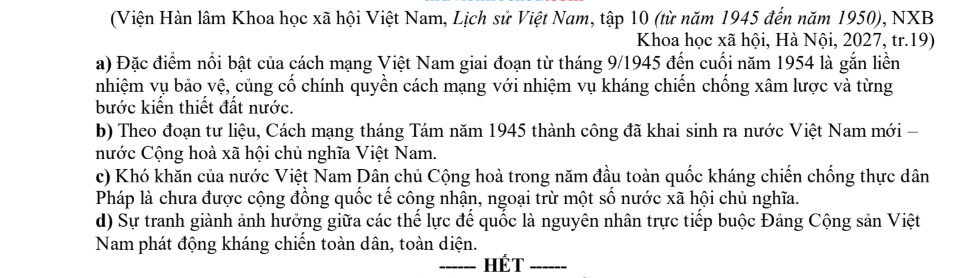 (Viện Hàn lâm Khoa học xã hội Việt Nam, Lịch sử Việt Nam, tập 10 (từ năm 1945 đến năm 1950), NXB Khoa học xã hội, Hà Nội, 2017, tr.19)