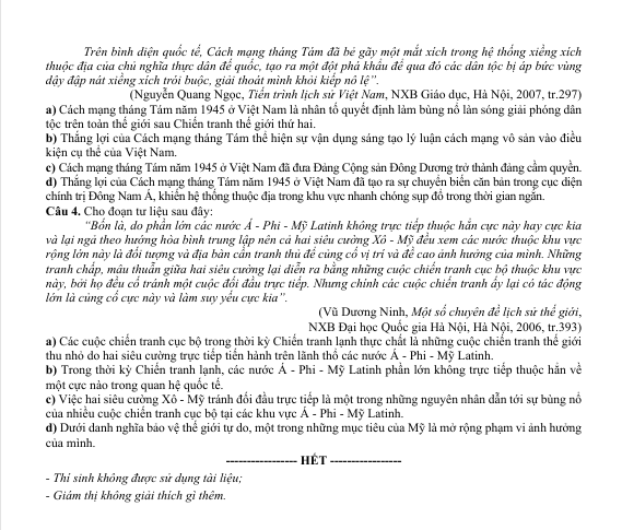 Cho đoạn tư liệu, trả lời các câu 22, 23, 24: