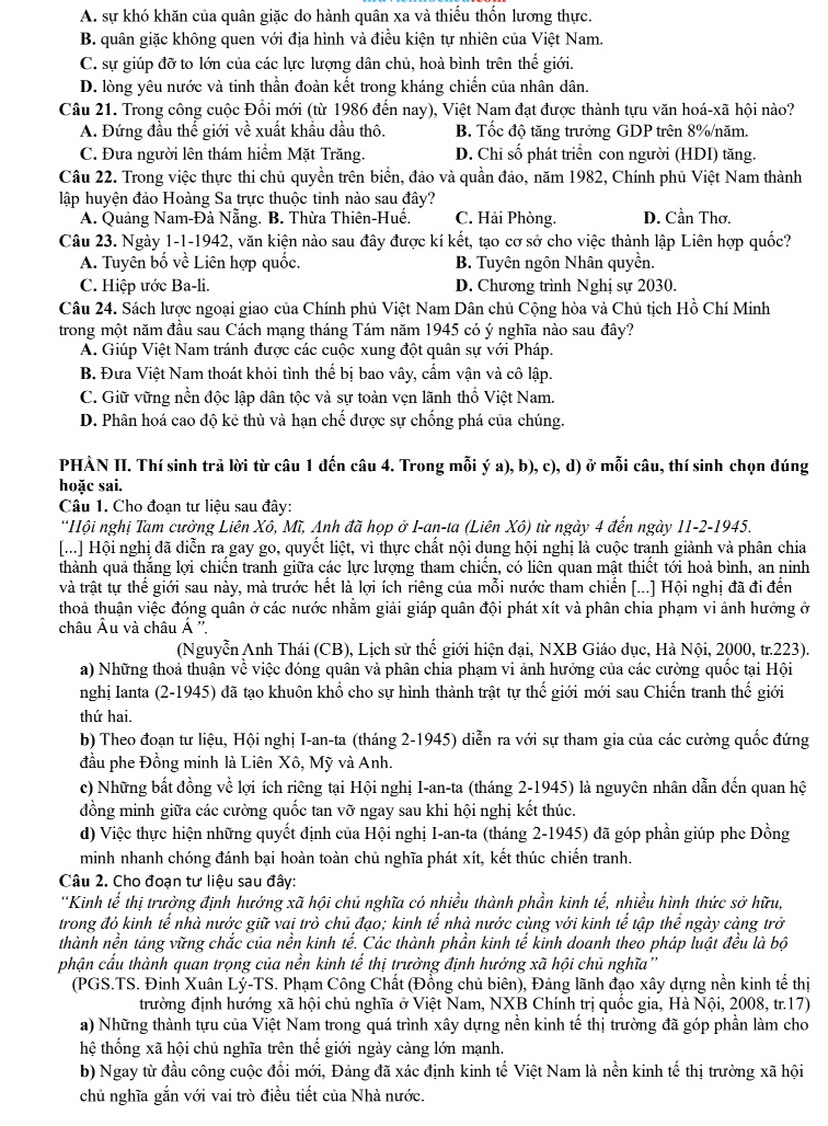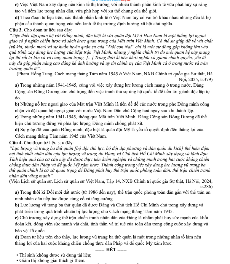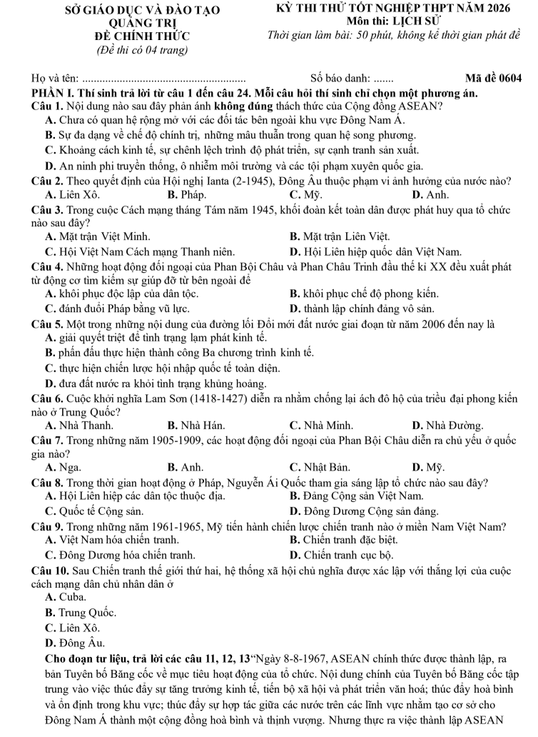 Đề thi thử Lịch sử THPT 2026 – Sở GDĐT Quảng Trị