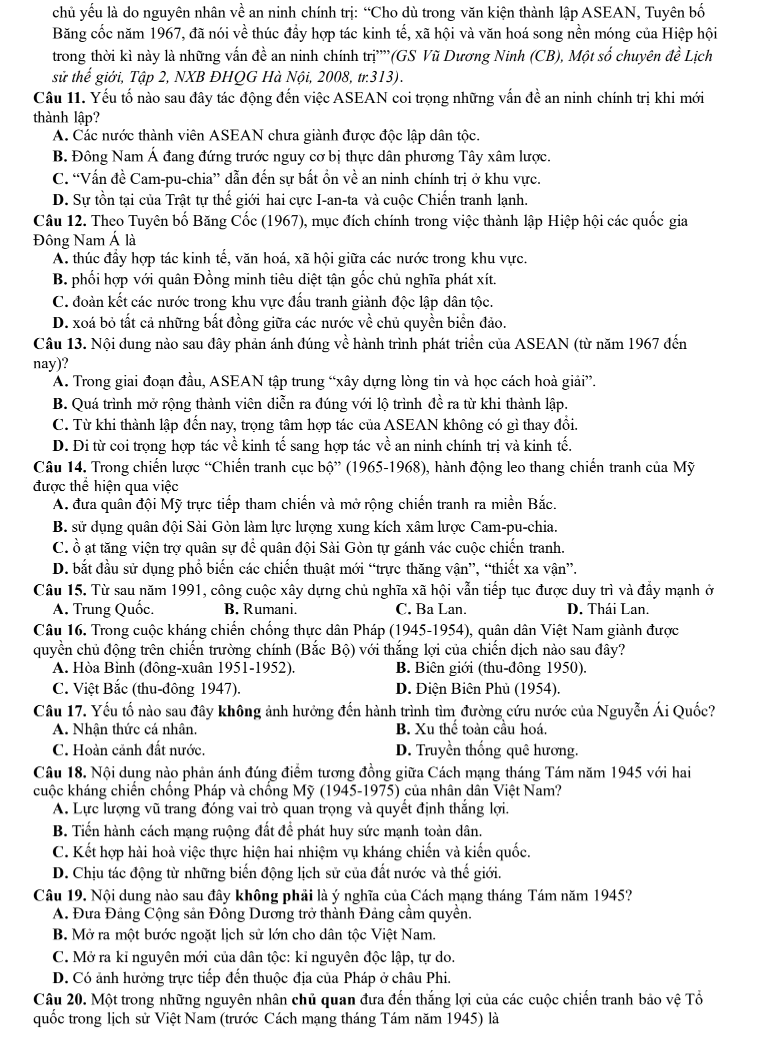 Câu 11. Yếu tố nào sau đây tác động đến việc ASEAN coi trọng những vấn đề an ninh chính trị khi mới thành lập?
