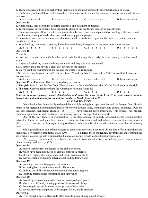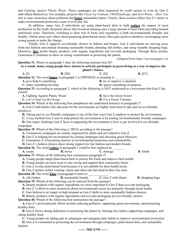 Đề Thi Thử Tiếng Anh THPT mang đến hệ thống câu hỏi được phân loại từ mức độ nhận biết đến vận dụng cao, giúp học sinh từng bước nâng cao khả năng sử dụng ngôn ngữ, phân tích ngữ cảnh và xử lý câu hỏi trắc nghiệm trong thời gian giới hạn. Nội dung đề tập trung vào những kiến thức trọng tâm của chương trình Tiếng Anh lớp 12, đồng thời hỗ trợ học sinh làm quen với các dạng bài thường gặp trong kỳ thi tốt nghiệp. Khi luyện tập trên nền tảng dethitracnghiem.vn, học sinh có thể xem đáp án chi tiết, theo dõi kết quả và cải thiện kỹ năng làm bài thông qua hệ thống đánh giá trực quan. Đây là tài liệu hữu ích hỗ trợ học sinh trong quá trình ôn thi chuyển cấp.