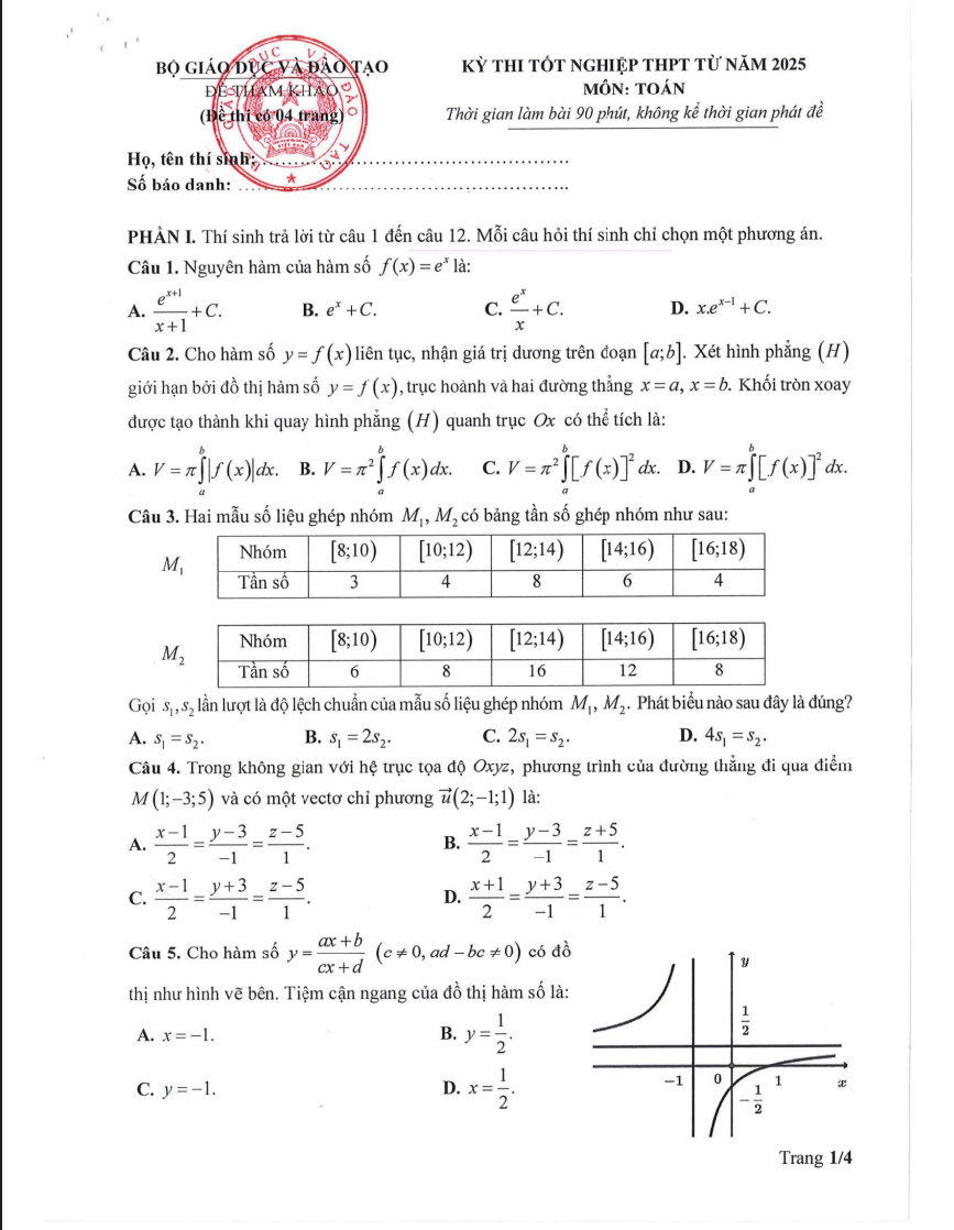 Đề Thi Thử Toán THPT 2025 là tài liệu ôn luyện quan trọng dành cho học sinh lớp 12 chuẩn bị bước vào kỳ thi tốt nghiệp THPT. Đây là đề thi thử được biên soạn bởi tổ Toán Trường THPT Yên Hòa (Hà Nội), dưới sự hướng dẫn của SỞ GD&ĐT – giáo viên dạy Toán với nhiều năm kinh nghiệm luyện thi đại học. Đề thi bám sát cấu trúc đề tham khảo của Bộ Giáo dục và Đào tạo năm 2025, bao gồm đầy đủ các chuyên đề trọng tâm như hàm số, mũ – logarit, nguyên hàm – tích phân, xác suất, hình học không gian,… phục vụ tốt cho quá trình ôn luyện. Nội dung được phân chia theo mức độ từ nhận biết đến vận dụng cao, giúp học sinh rèn kỹ năng giải toán nhanh và chính xác.