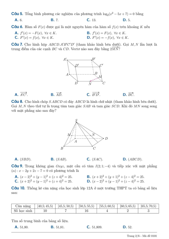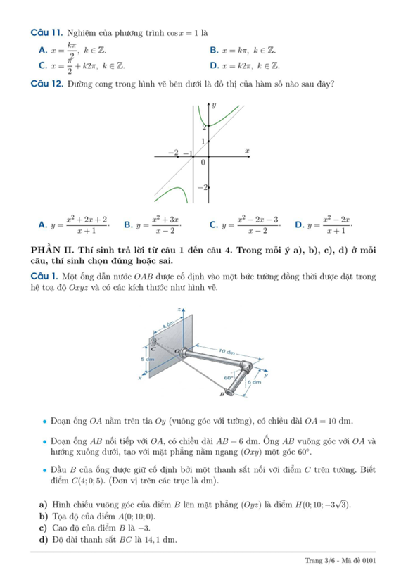 Thí sinh trả lời từ câu 1 đến câu 12. Mỗi câu hỏi thí sinh chỉ chọn một phương án.