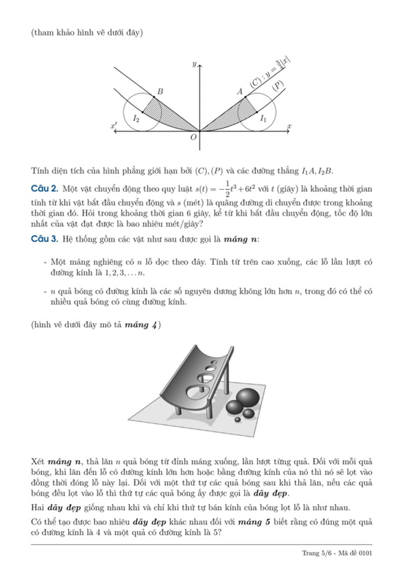 Thí sinh trả lời từ câu 1 đến câu 6.