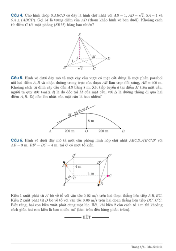 Câu 6. Một căn phòng hình hộp chữ nhật ABCD.A’B’C’D’ với AB = 3 m, BB’ = BC = 4 m, tại C có một tổ kiến.